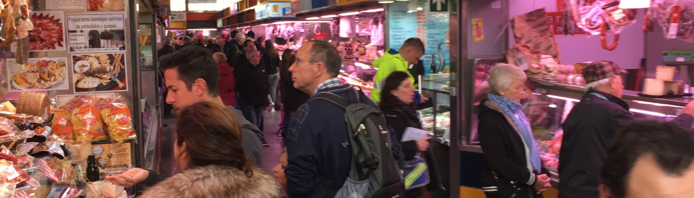 We were back at the Mercado again this morning; so early they weren’t really open. The concept of ‘open’ is a little personal for the Mercado: the gates were open so we walked in and it was us, the vendors, and their suppliers. They were willing to sell to us when we weren’t too much in the way. One picture here was taken later in the day when it was starting to fill up. The puzzled look of the young man on the left suggests either US or a part of the UK that doesn’t use Euros.